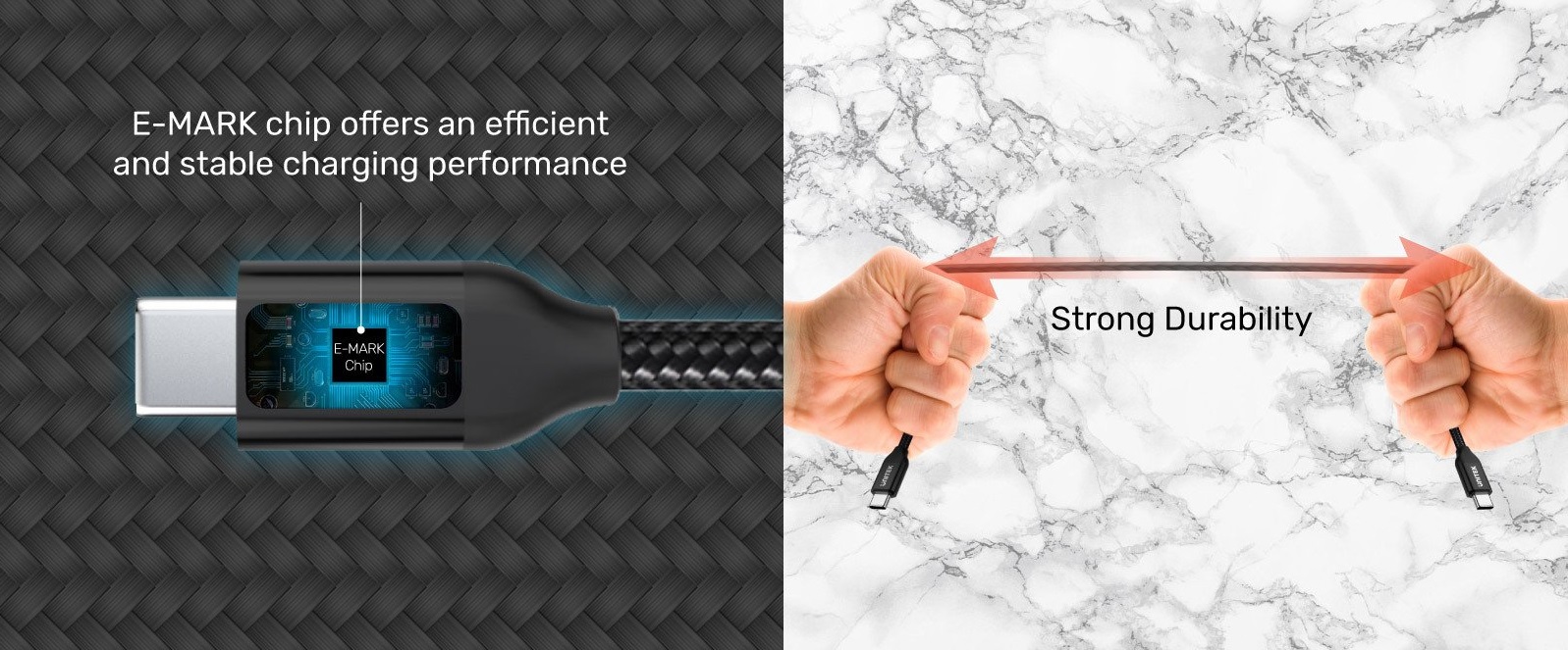 • An integrated E-MARK chip boosts the power up to 20V/5A, offering a fast and efficient charging
