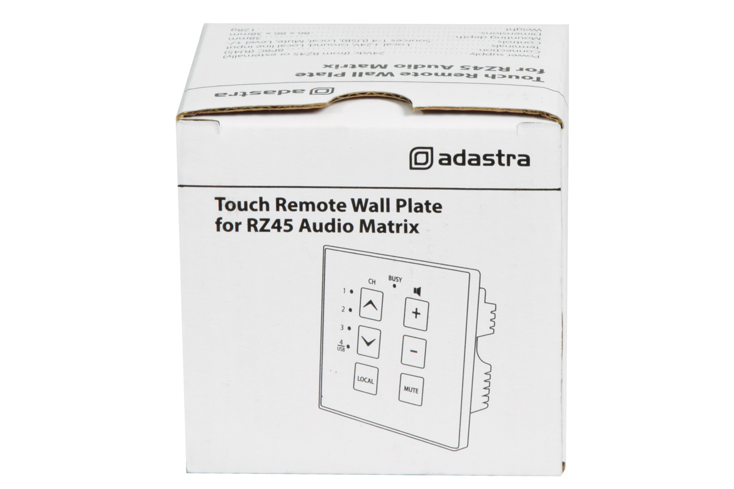 Remote control for the RZ45 audio matrix system built into a single gang 86 x 86mm wall plate. The illuminated acrylic touch-operated surface selects between 3 stereo audio sources or the inbuilt media player on the RZ45 and controls the output level to its zone. Connection by standard network cable carries signal and power to the TR86 panel up to 100m away from the RZ45 or signal up to 1km away with a separate 24Vdc power input. Additionally, a mono line level signal can be wired internally to the panel via screw terminals to provide an independent local audio source. Up to 5 TR86 remote panels may be used with a single RZ45 unit controlling up to 5 independent zones.