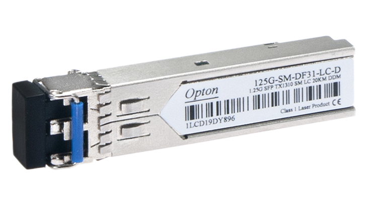 Opton 125G-SM-DR31-LC is an SFP module equipped with two LC / UPC connectors. It is used to transmit data with a maximum capacity of 1.25 Gb / s. It uses two singlemode fibers, one of the fibers is transmitting the signal (Tx) and the other is receiving (Rx). Transmission takes place at a wavelength of 1310 nm (in both channels). The maximum transmission range is about 20 km, the insert supports DDM function. The cylinder is compatible with Cisco / Cisco Nexus and devices that do not have a lock on the cylinder manufacturer (D-Link, TP-Link, MikroTik, Ubiquiti and others). On request, we program SFP modules to work with other devices.