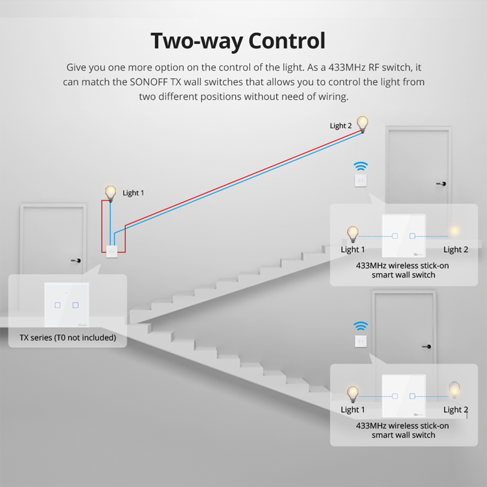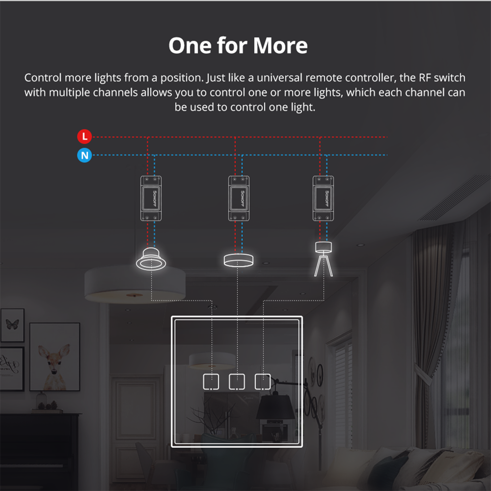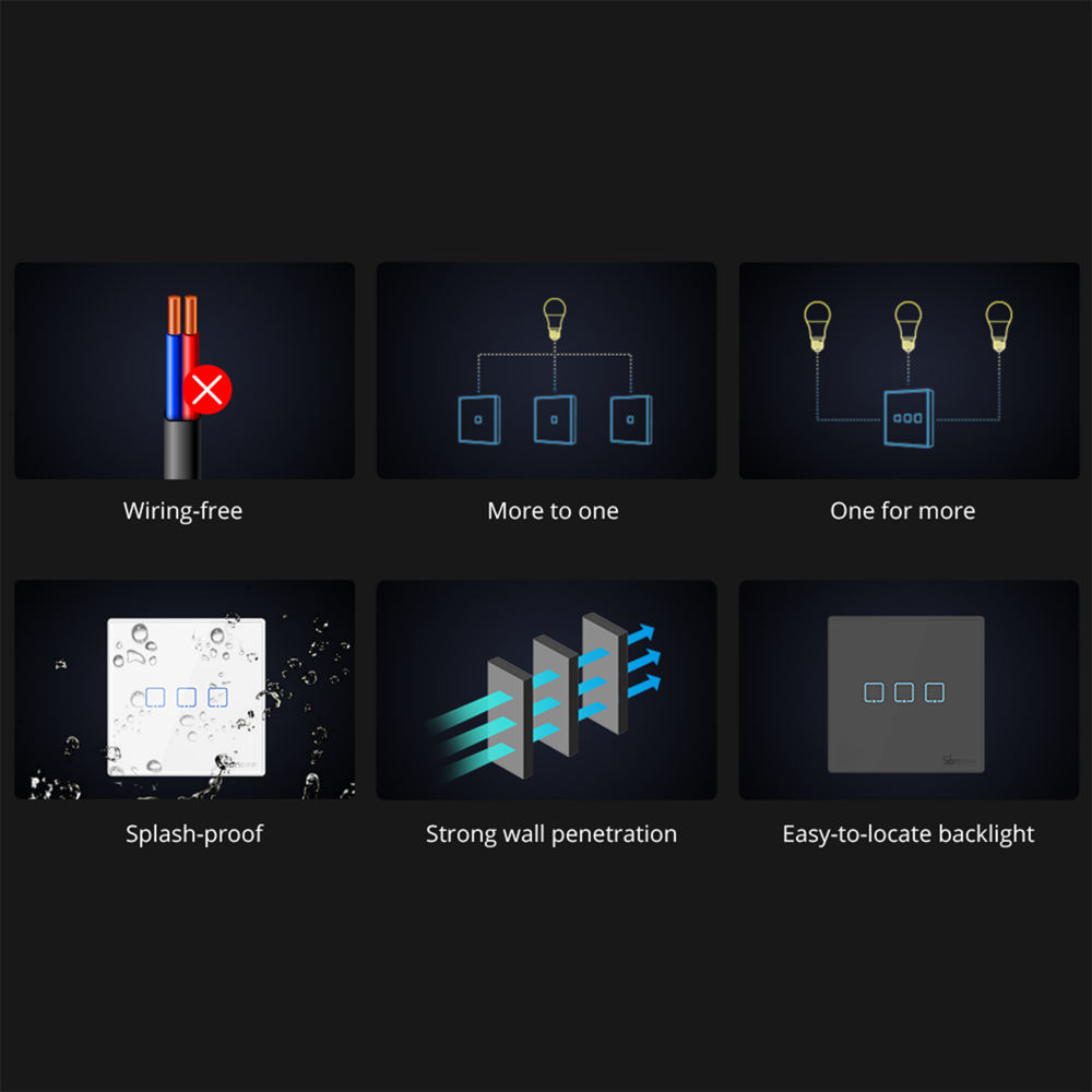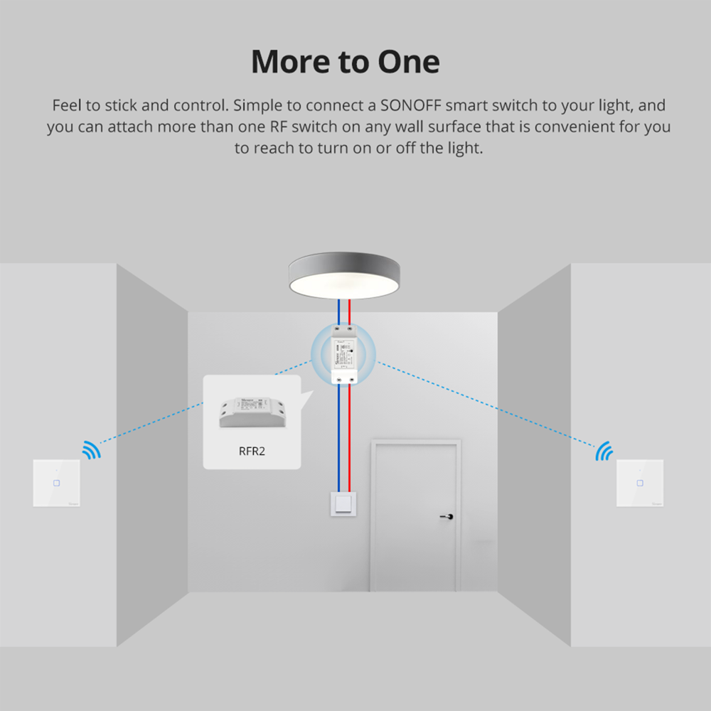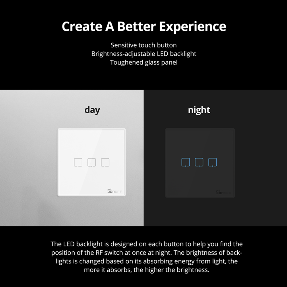 • Designed to work with all the Sonoff Wall Switches that supports RF Signal (433MHz)