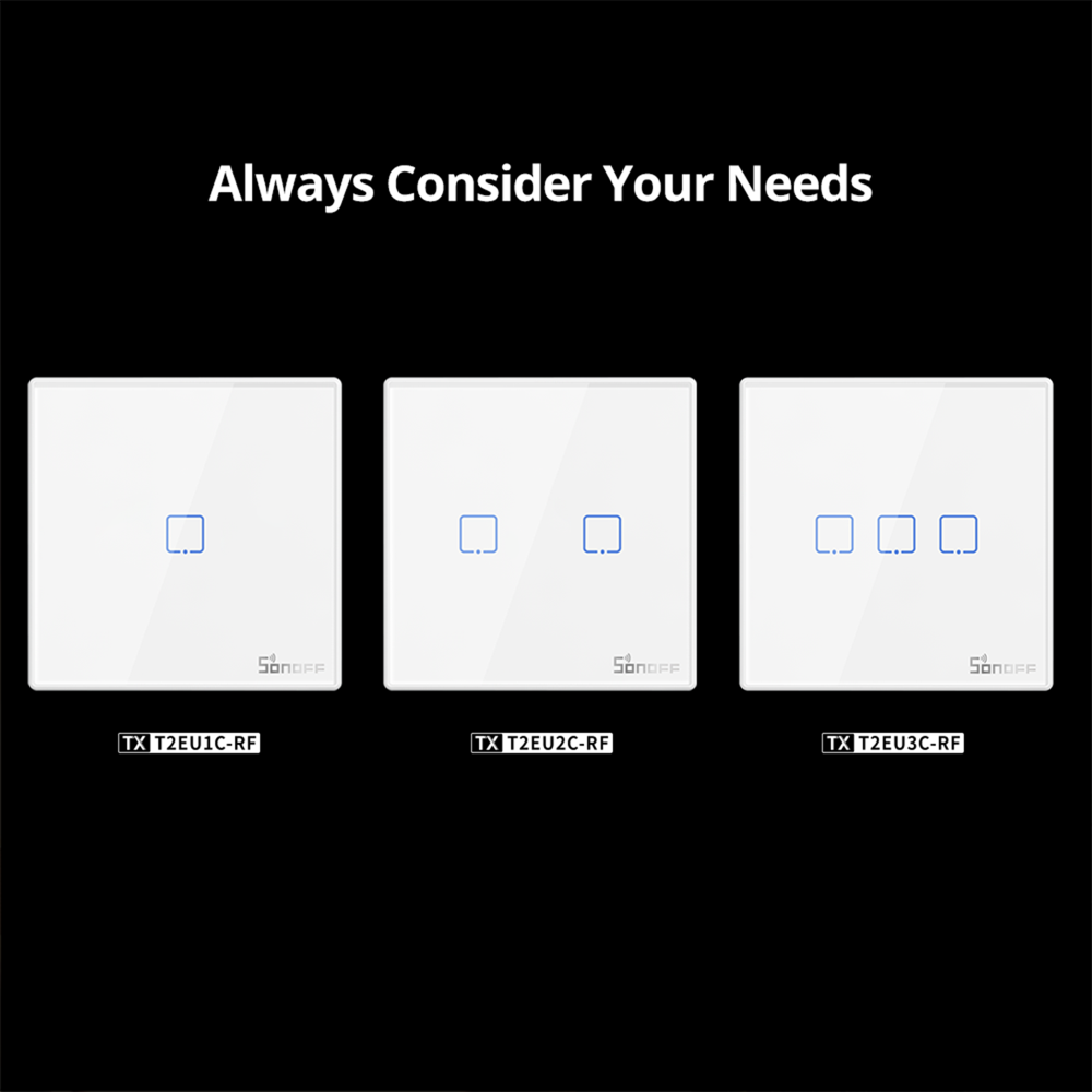 Sonoff T2EU3C-RF Smart Wall Touch Switch White (433MHz remote controller )