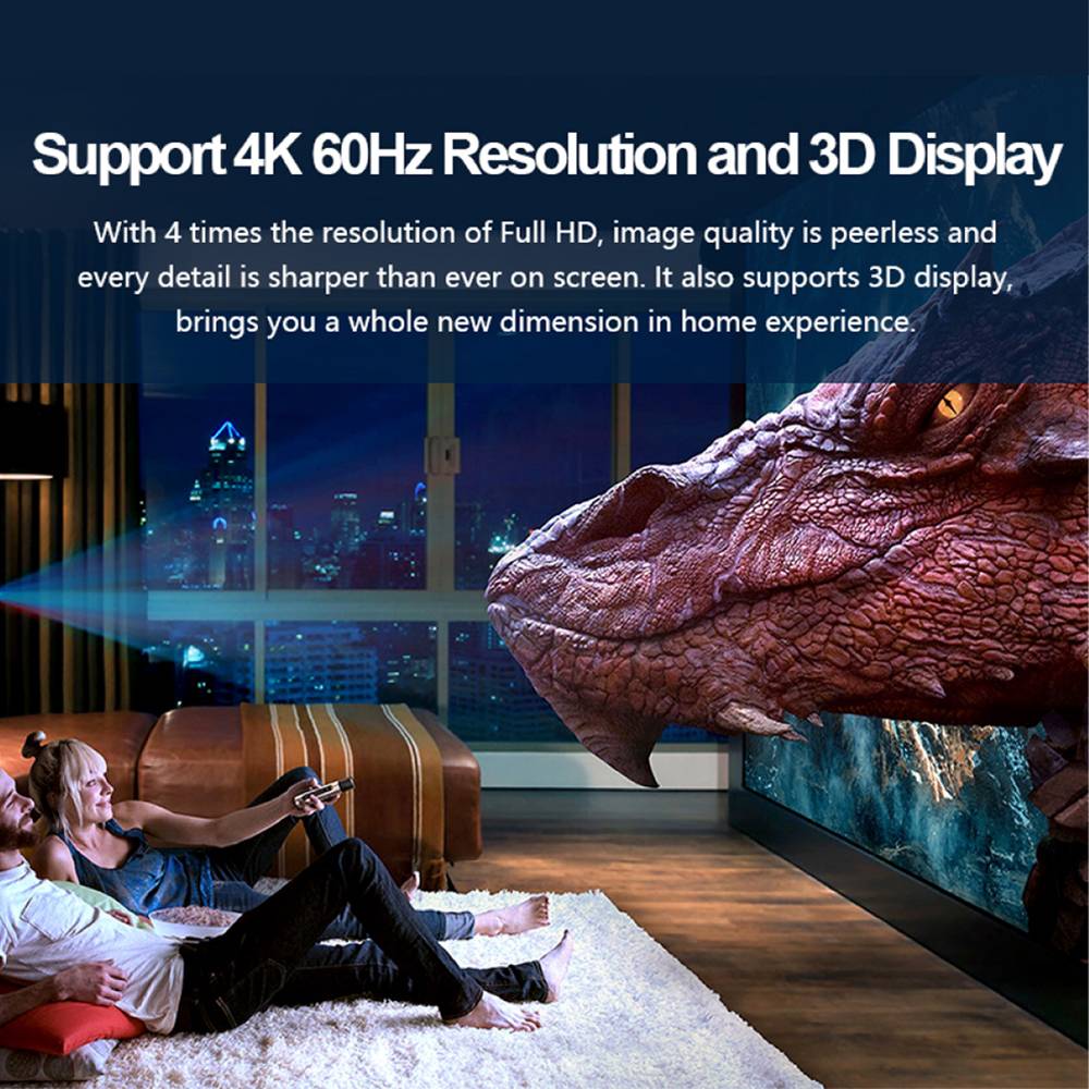 • Support 4K@60Hz resolution and 3D display, as specified in HDMI