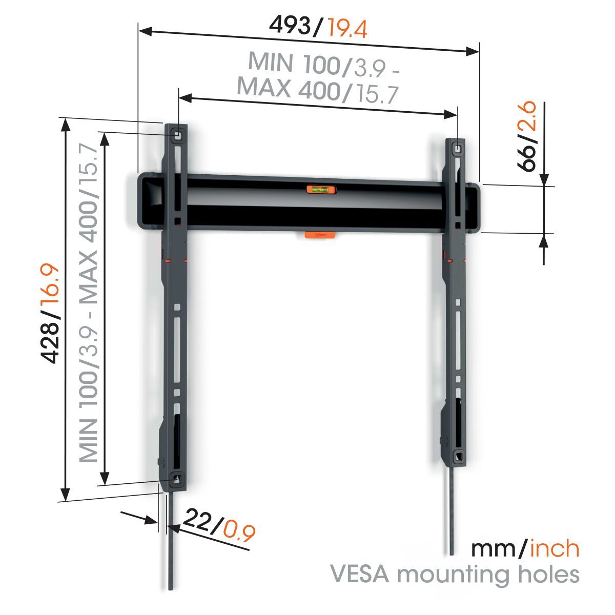 Would you like to mount your flat screen TV stylishly and securely on the wall? With this COMFORT Fixed TV wall mount, you are choosing design and safety. The wall mount is suitable for mounting TVs from 32 to 77 inches and weighing up to 50 kg flat against the wall. The space between the TV and the wall is only 2.2 cm. COMFORT Fixed TV wall mounts cannot be turned or tilted. So, if you always sit directly in front of your TV, this is the perfect wall mount for you.