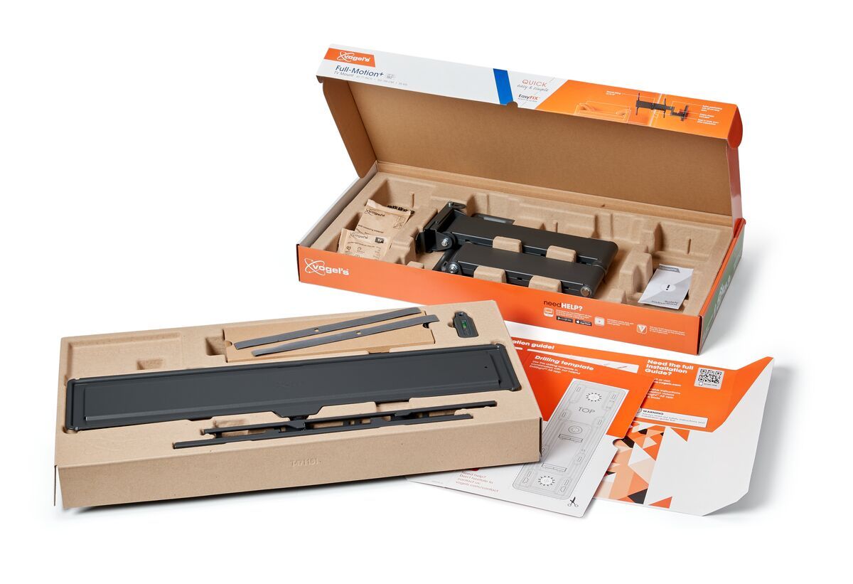 The QUICK Full-Motion+ TV wall mount can be turned up to 180° and tilted up to 15°. This means that you can enjoy your TV from virtually anywhere in the room. What's more, this TV wall mount takes less than 30 minutes to install. The QUICK Full-Motion+ TV wall mount is suitable for TVs from 40 to 77 inches and weighing up to 35 kg.
