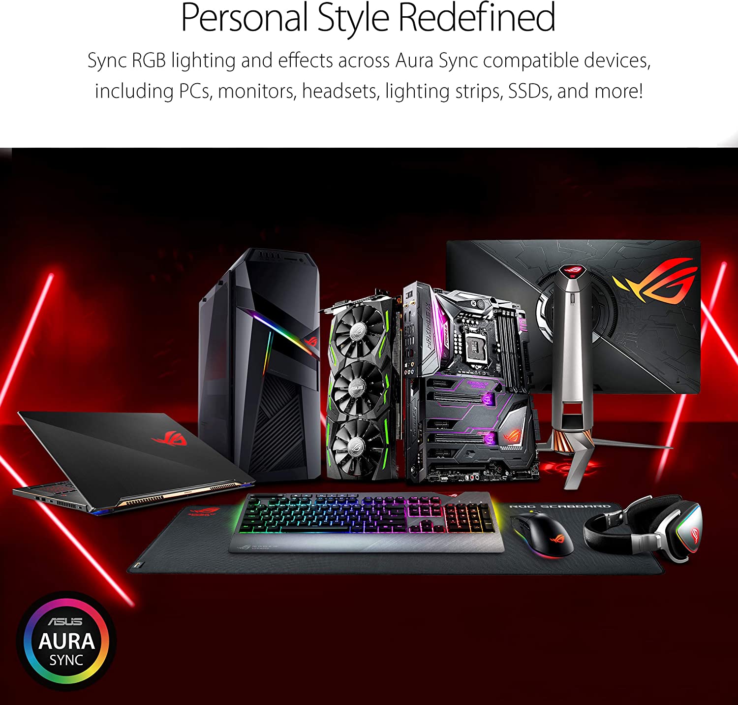 PERSONALIZED PLAY SETTINGS – Features ASUS Aura Sync & ROG Armoury II support for customization of audio profiles, lighting effects & more across all Aura Synced devices, including keyboard, mouse pad, and other gaming accessories
