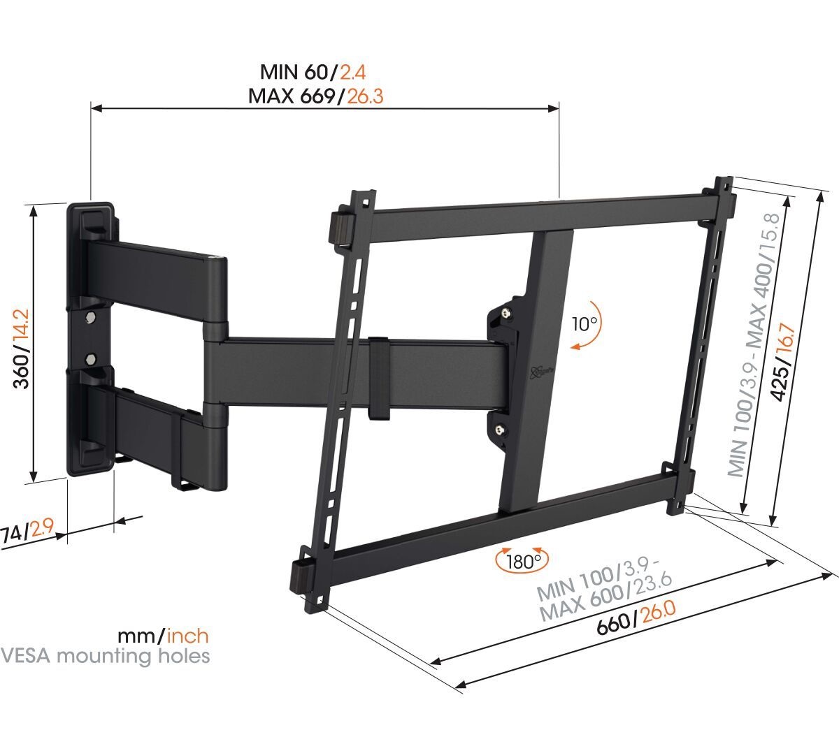 Vogels COMFORT TVM3843-B TV Wall Mount 60x40 Turn 2 arms 55kg Black