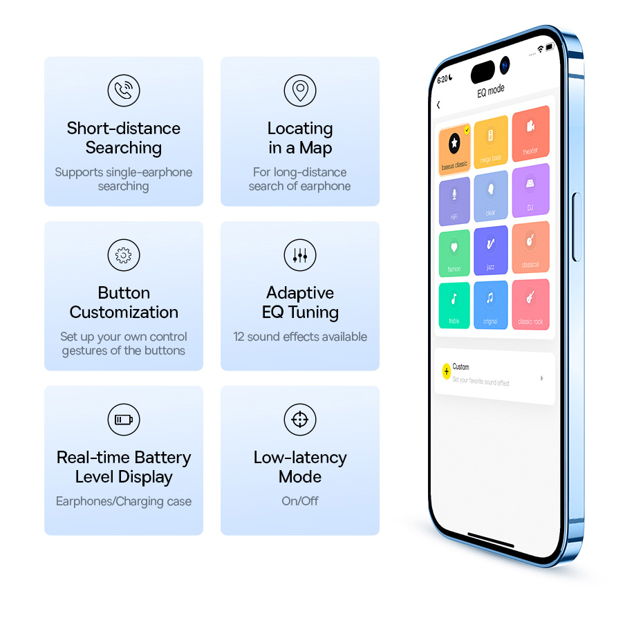 Even more possibilities: The dedicated Baseus App gives you even more possibilities. With its help you can, among other things, locate your headphones, see the actual battery status, switch modes or change button settings. Install it on your phone and get more options!
