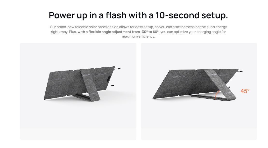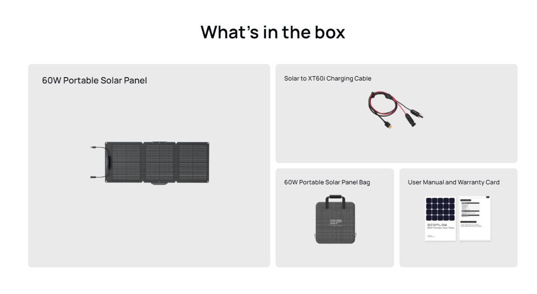 - 60W Portable Solar Panel is compatible with the Ecoflow app when connected to an EcoFlow power station. Monitor your solar charging status with smart, easy, and customized app control in real-time