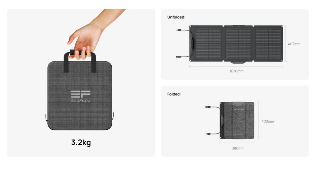 - EcoFlow's RIVER 2 Solar Generator is a must-have for camping or RV trips. Our new 60W portable solar panel is the lightest and most convenient option available. With a weight of only 3.2kg and a folding design, it's easy to grab and go at any time