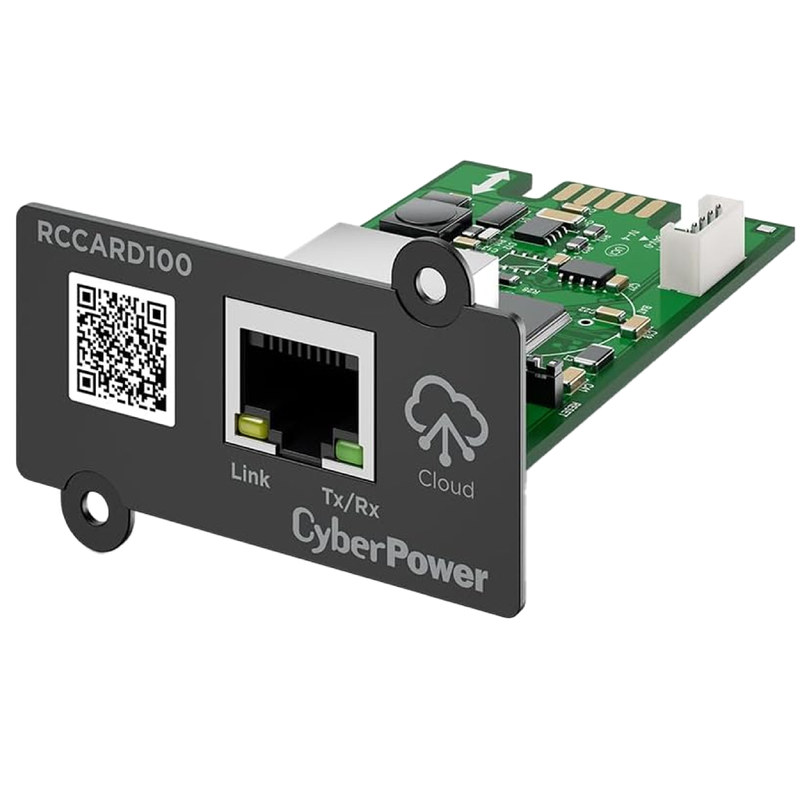 CyberPower RCCARD100 is an optional management add-on to specific CyberPower UPS series. By inserting the card into the expansion slot on the UPS, users can add the UPS to the PowerPanel Cloud system, thus enabling remote monitoring and management of the UPS, through a secure web portal or mobile app.