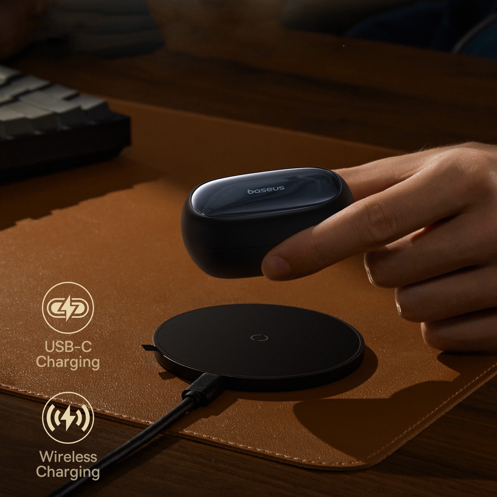Long Battery Life, Convenient Charging: Enjoy up to 8 hours of playback on a single charge with Baseus Bowie MA20. Furthermore, the charging case provides a total of up to 38 hours of playback. You can listen to your favorite podcast on your way to work or during your workout. Additionally, a full charge of the earbuds takes about 1.5 hours, and a USB-A to USB-C cable is included in the package. The model also supports wireless charging.