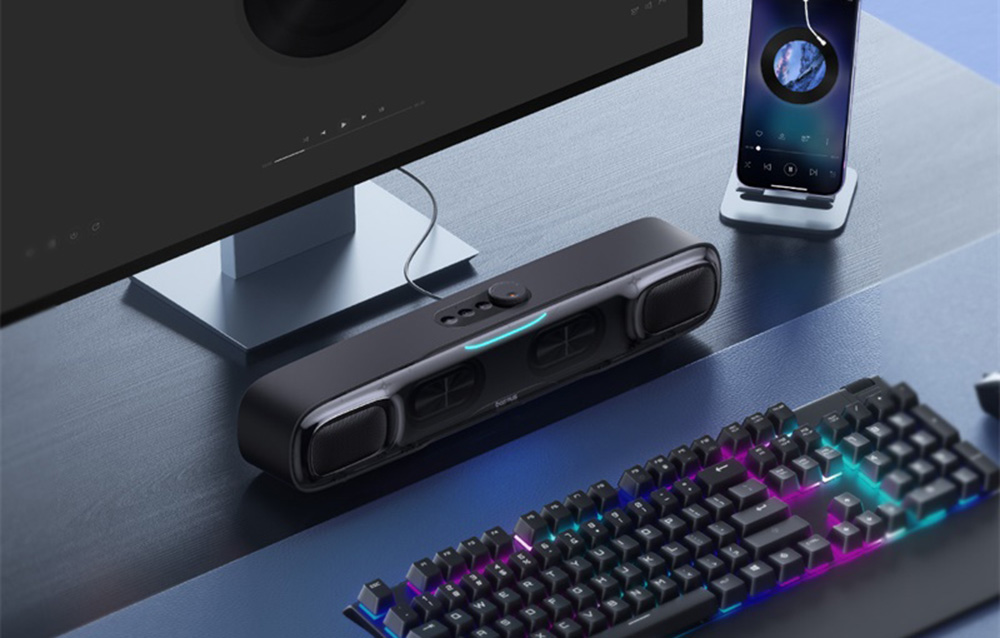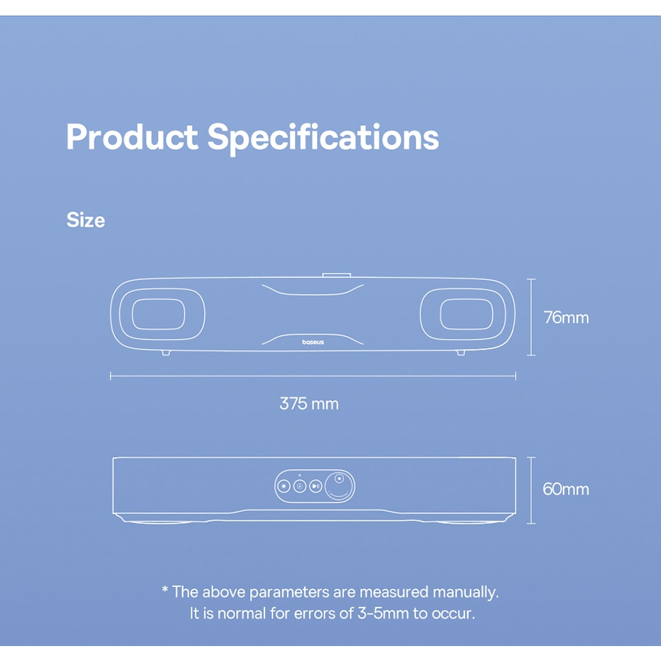 Bluetooth and USB-C Connection :The Baseus AeQur DS10 Mini Soundbar is equipped with a Bluetooth 5.3 module, which ensures a stable and energy-efficient connection. An additional benefit is the ability to seamlessly switch between two devices. Meanwhile, the USB-C port allows not only for music transmission but also for power supply.