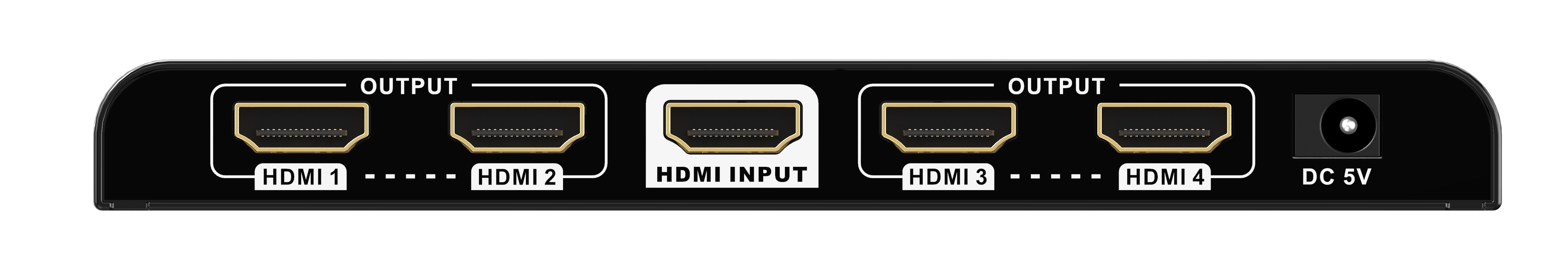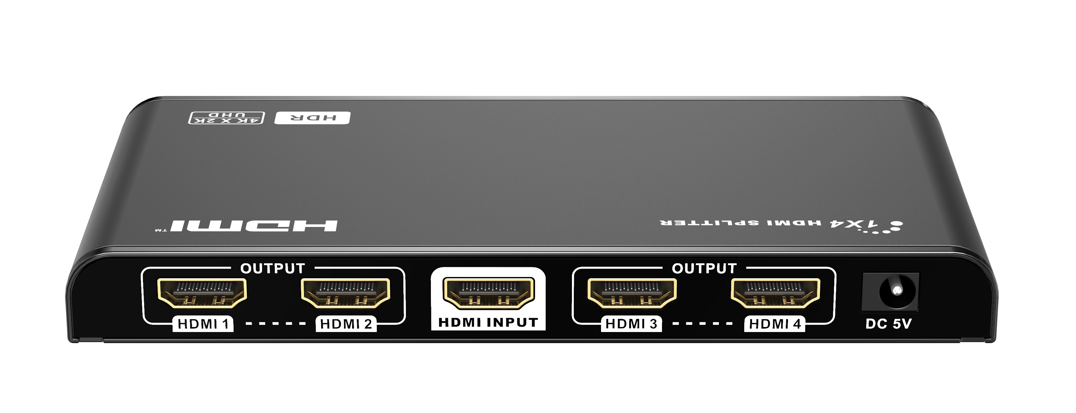 1x4 HDMI splitter distributes 1 HDMI source to 4 HDMI displays simultaneously. Apply for STB, DVD, Media Player, Laptop, D-VHS and other HD-Player devices. It's compatible with HDMI 3D and 4Kx2K.