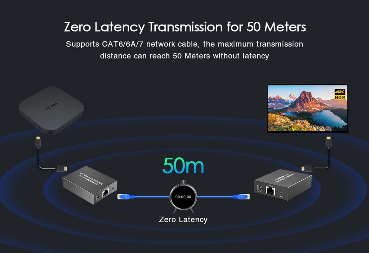 • The 4K@60Hz HDMI signal can be extended by 50m through CAT6/6A/7 network cable