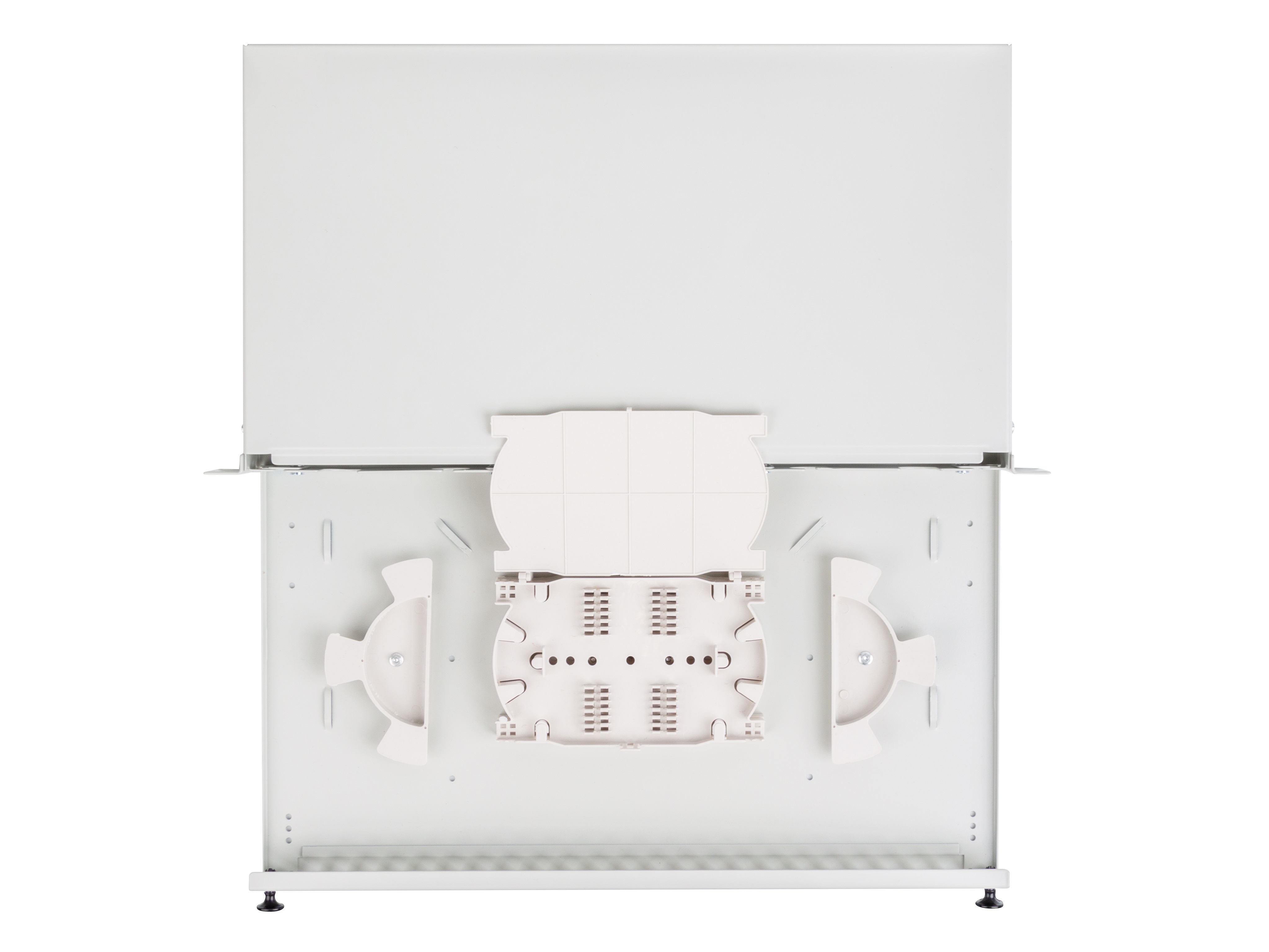 The handles of the so-called rack "ears" are adjustable, which allows you to seamlessly adjust the fiber optic patchpanel to the requirements of a particular user in the data communications cabinet.