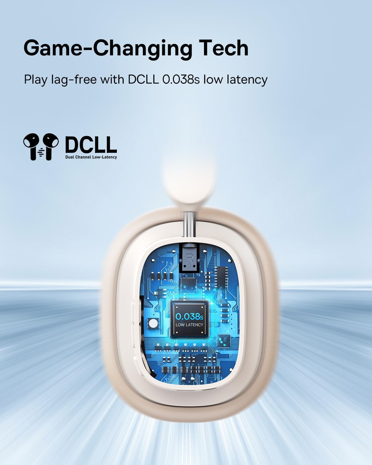 0.038𝒔 𝑳𝒐𝒘-𝑳𝒂𝒕𝒆𝒏𝒄𝒚 & 𝑬𝑵𝑪 𝑴𝒊𝒄 The newest Bluetooth 5.3 chip-set and low latency technology help to fully synchronize audio and video in gaming mode - experience imperceptible 0.038s low latency. The ENC mics only delivers your voice but not the noise during phone calls or communicating in online games.