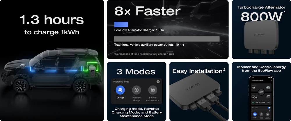 EcoFlow Alternator Charger 800W 3in1 Charger for Power Stations, Car Battery & Jump Starters, Charges 1kWh in 1.3 hr