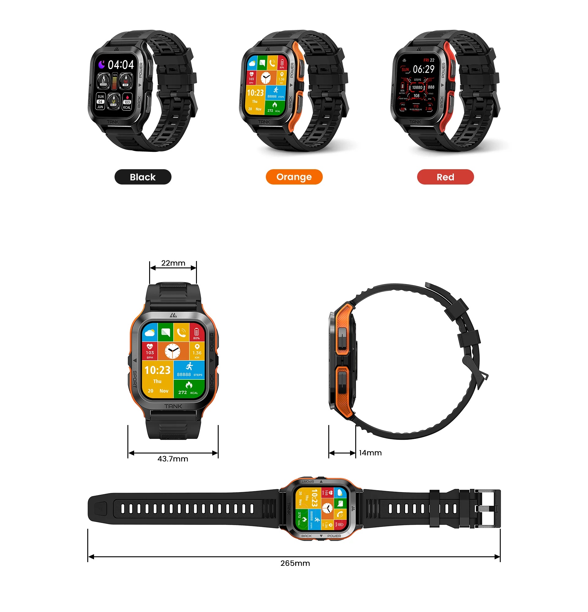 KOSPET TANK M2 also got through the demanding IP69K rating test, so that the rugged smartwatch accompanies you during day-to-day water sports and activities, such as swimming, diving, surfing, and so forth.
