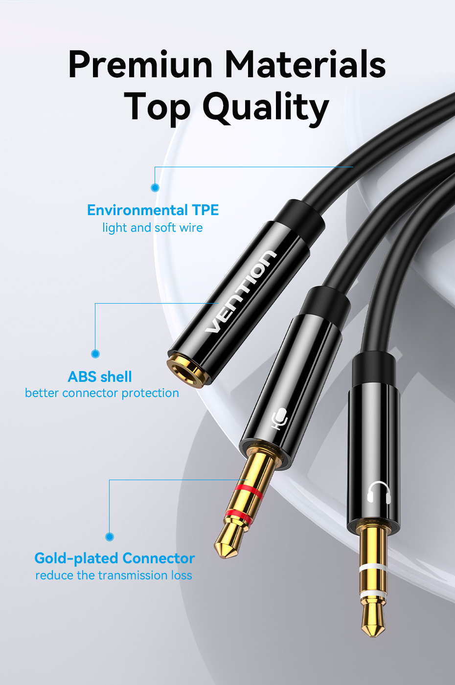 2 in 1 Functionality: Combines audio input/output with a 3.5mm TRRS 4-pole interface, allowing for both earphones and microphone connections through a single cable.