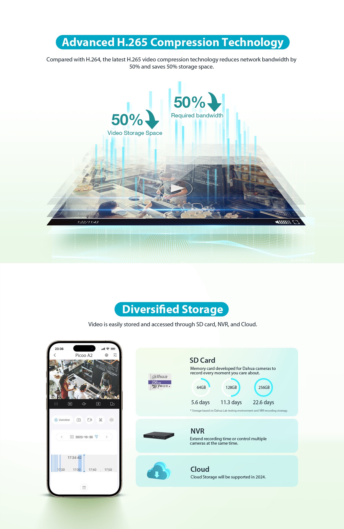 It supports two-way talk, allowing you to communicate with people in front of the camera in real time.It also can record full-color videos and information of key events using Smart Dual Illuminators, effectively reducing light pollution
