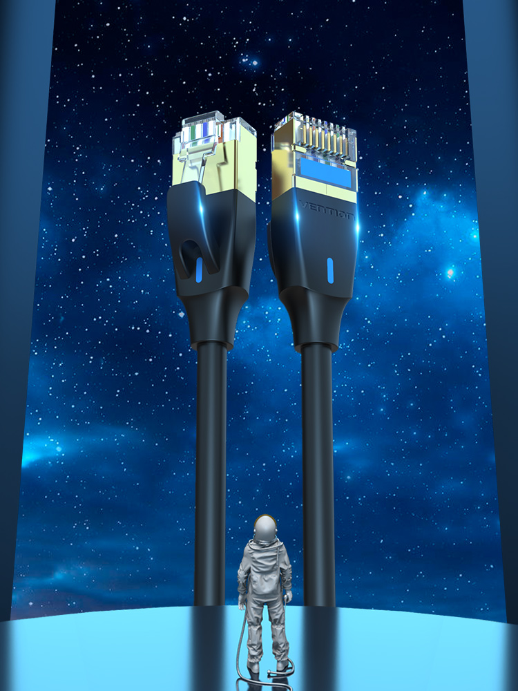 • Double Shielding: Equipped with both aluminum foil and metal braid shielding, the Vention Cat.8 Patch Cable is designed to offer premium protection against electromagnetic and radio-frequency interference (EMI/RFI), ensuring superior signal quality and reducing crosstalk.
