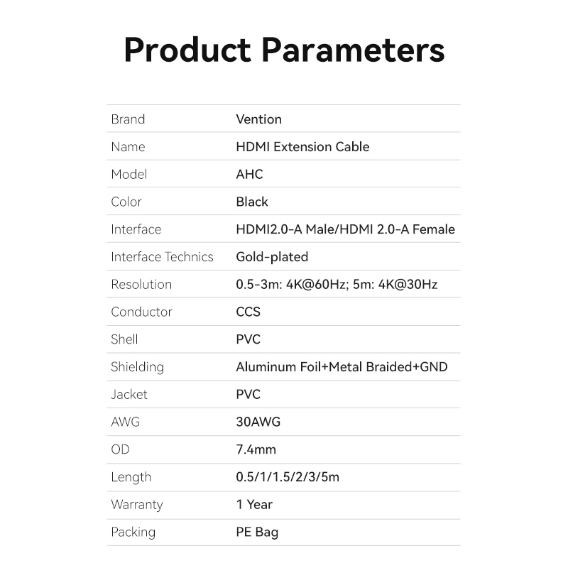 Vention HDMI Cable 2.0 M-F Extension 1.0m AHCBF