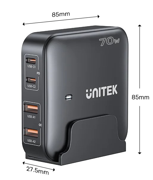 UNITEK latest GaN III technology brings super charging performance and safety to this charging station. At the same time, it has slim and compact design. You can get a high-speed charging experience anywhere. Say goodbye to old, bulky chargers.