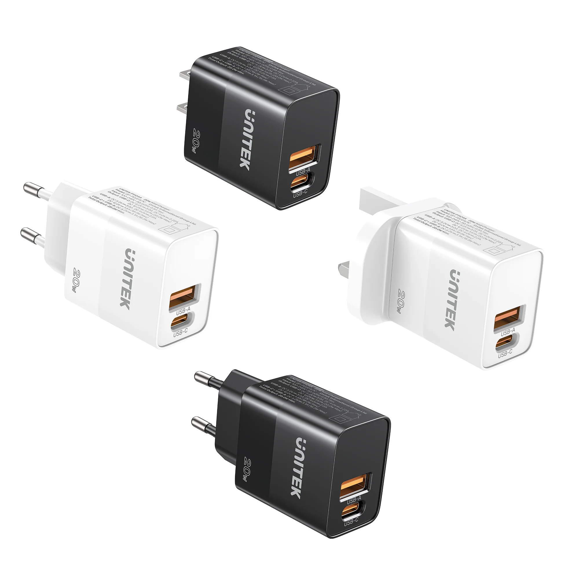 Dual Port QC + PD 3.0 Power Adapter. UNITEK 20W Wall Charger shines with its remarkable minimized design. Despite of its compact size, it delivers robust charging capabilities. Whether users are at home, in the office, or on the go, this charger serves as the ideal companion for your mobile lifestyle.