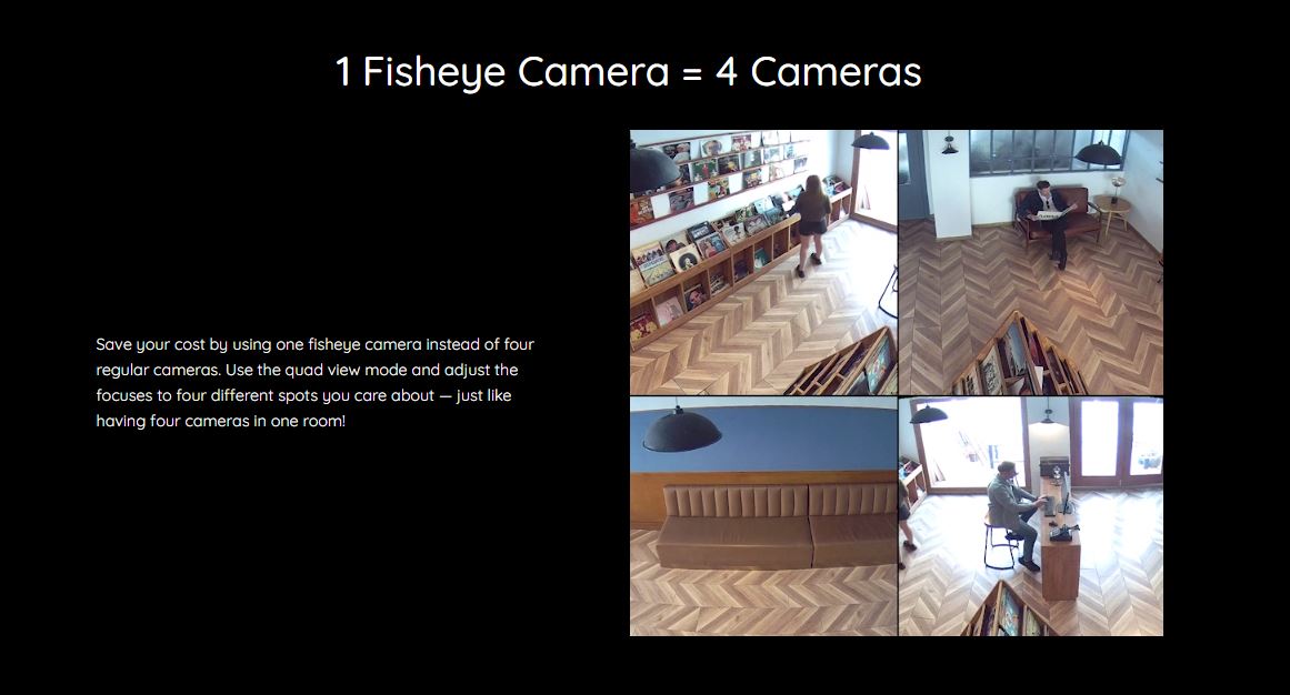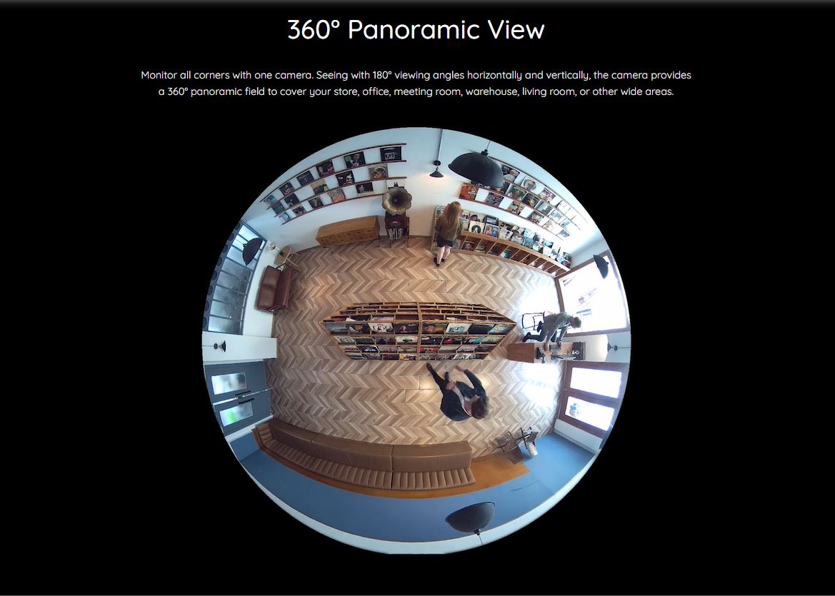 360° Panoramic View : Monitor all corners with one camera. Seeing with 180° viewing angles horizontally and vertically, the camera provides a 360° panoramic field to cover your store, office, meeting room, warehouse, living room, or other wide areas