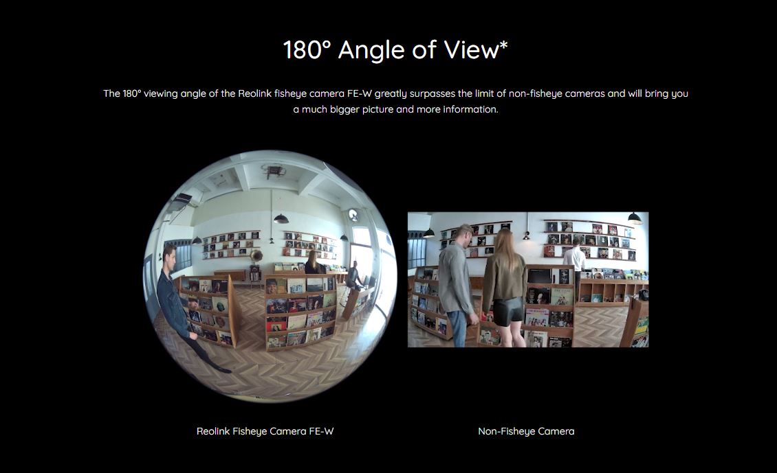 180° Angle of View : The 180° viewing angle of the Reolink fisheye camera FE-W greatly surpasses the limit of non-fisheye cameras and will bring you