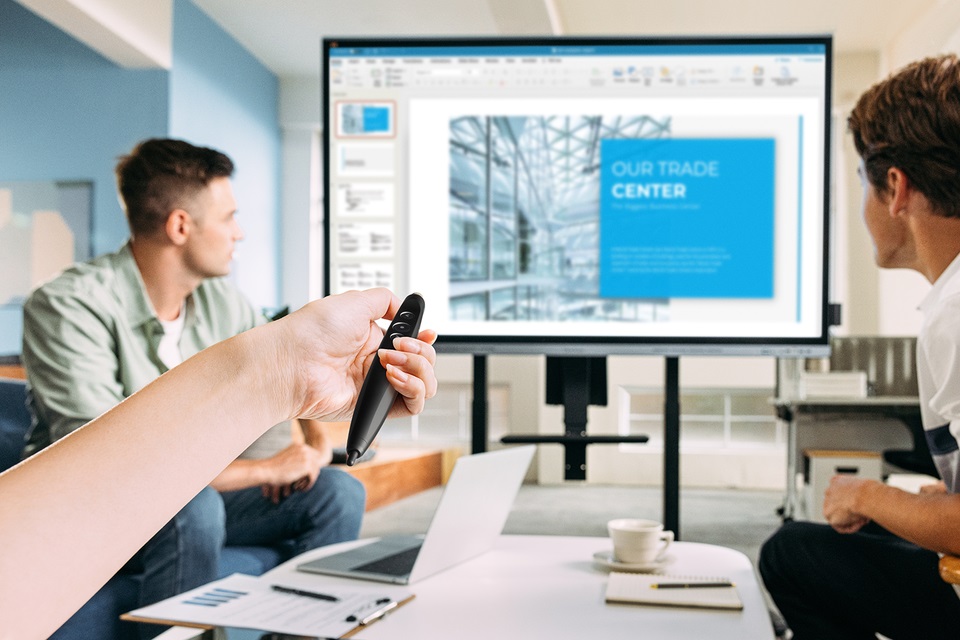 Take your presentations to the next level with the VB-PEN-007 AirPen. Boasting air mouse, digital laser pointer, and spotlight functions, this plug-and-present stylus equips presenters with the tools they need to express their ideas confidently. Simply connect it to any ViewBoard or compatible touch device to enjoy greater freedom of movement and a natural, pen-on-paper writing experience during presentations.