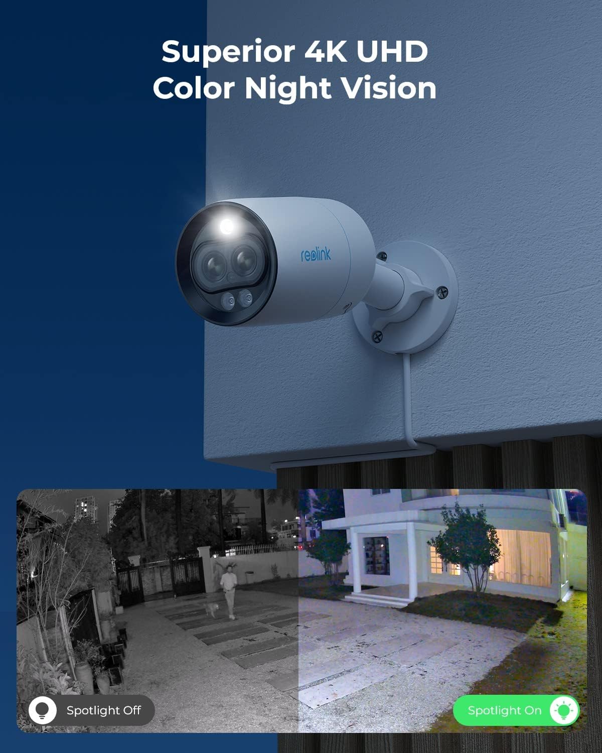 Flexible Night Mode Options -Switch between three night modes according to your need: the Black & White Mode, Color Night Mode, and Smart Night Mode. With the Smart Night Mode enabled, the spotlight will be automatically triggered when motion is detected and everything will be captured in full-color