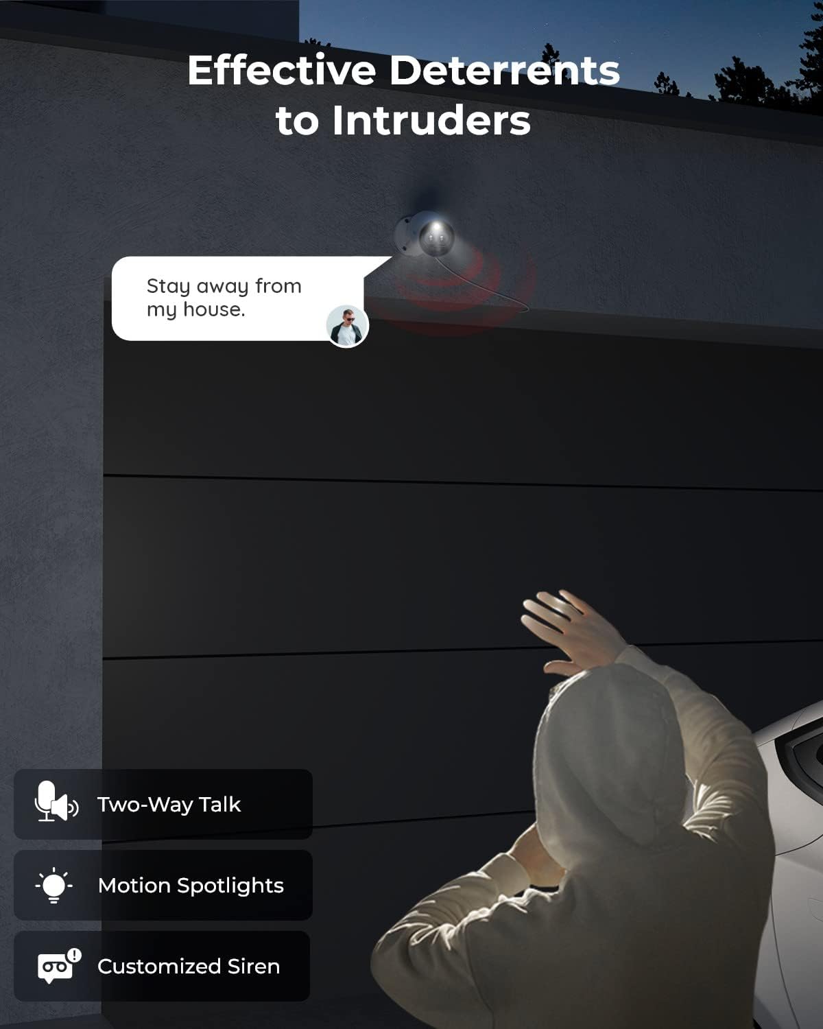 Dual Warning, Double Security -When the P330M detects movement, you'll get push notifications right away. At the same time, the siren and spotlight will be activated automatically or manually to warn off intruders