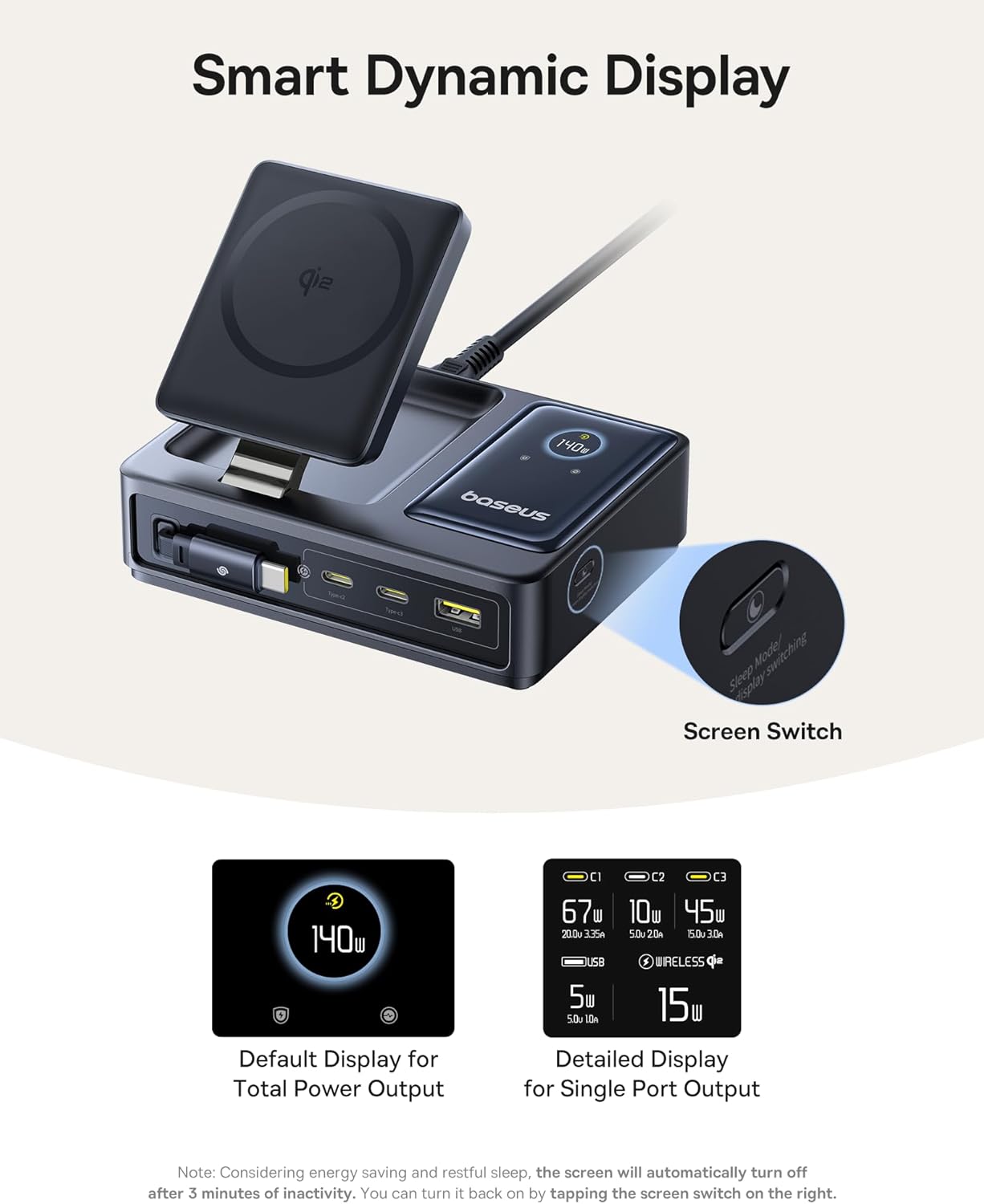 Wired & Wireless Versatility: Supports the Qi2 certified 15W wireless charging for iPhone and 140W PD3.1 USB-C super fast charging. The versatile fast charging solution brings you flexibility and efficiency, significantly boost your productivity.