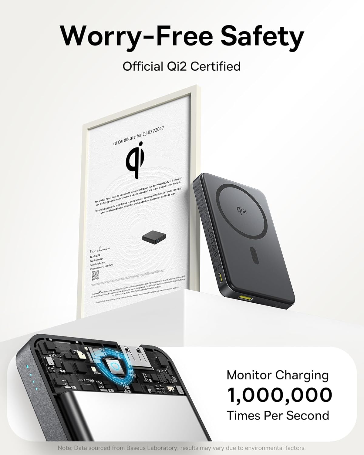 𝐐𝐢𝟐 𝐂𝐞𝐫𝐭𝐢𝐟𝐢𝐞𝐝 𝟏𝟓𝐖 𝐖𝐢𝐫𝐞𝐥𝐞𝐬𝐬 𝐂𝐡𝐚𝐫𝐠𝐢𝐧𝐠 Different from old 7.5W MagSafe portable charger in market, Baseus Qi2 power bank can release authentic 15W high-speed charging, 2X faster than old 7.5W QI standard. Maximizing compatibility and charging efficiency for your iPhone, get your iPhone 16 Pro from 0 to 35% in just 30 minutes. And backed by Qi2 official certification (QI2 ID: QI-22047), seamlessly compatible with Mag-Safe.