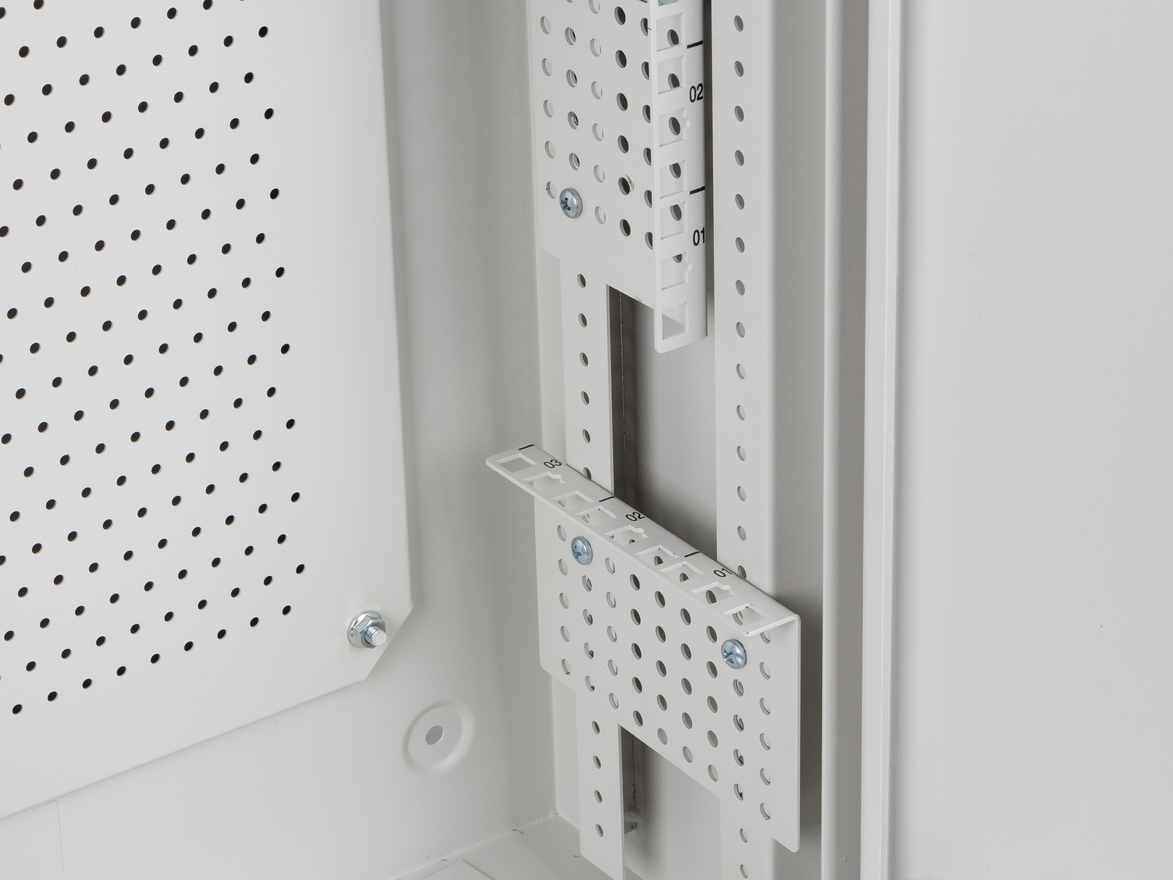 • A back panel with a mesh panel to which components can be attached with an M6 screw,