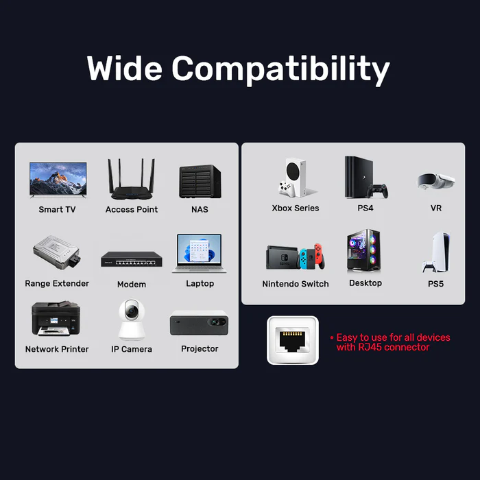 - Wide Compatibility: UNITEK Cat 8 ethernet cable is compatible with computers, laptops, modems, routers, PS5, PS4, PS3, X-Box 360, X-Box One, Switch, networking switches, ADSL, network adapters, hubs, and other networking devices. It is also backward compatible with Cat7, Cat6e, Cat6, Cat5e, Cat5.