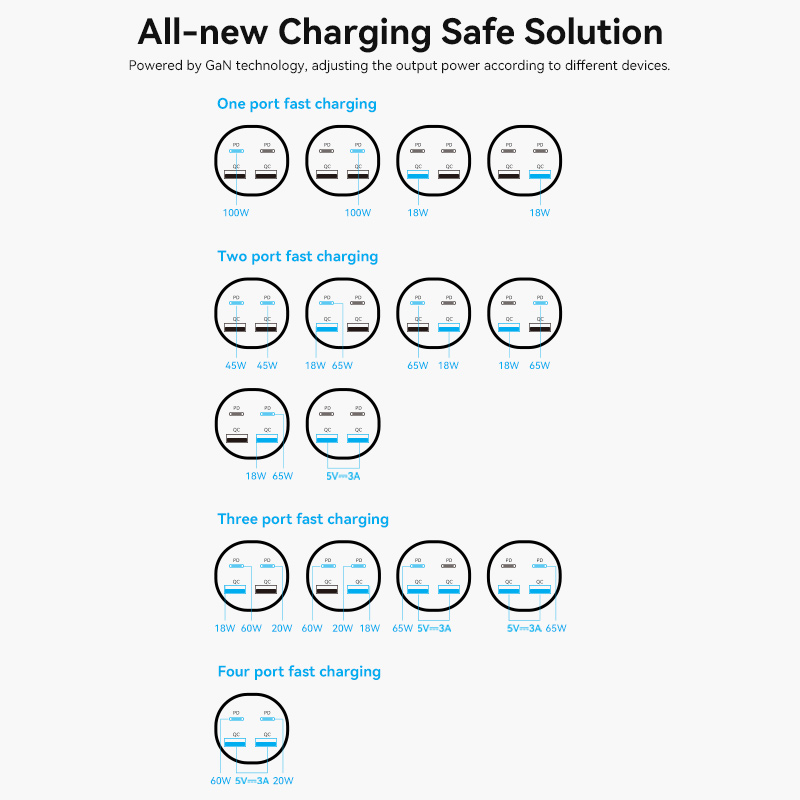 Supports PD 3.0, QC 3.0, AFC, FCP, SCP, PE, and other fast-charging protocols