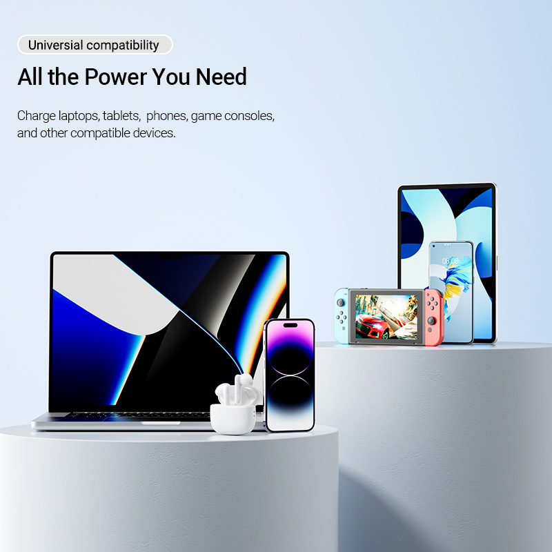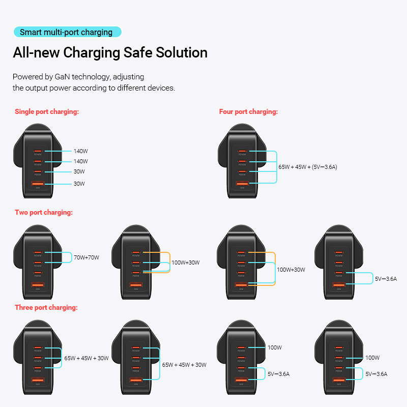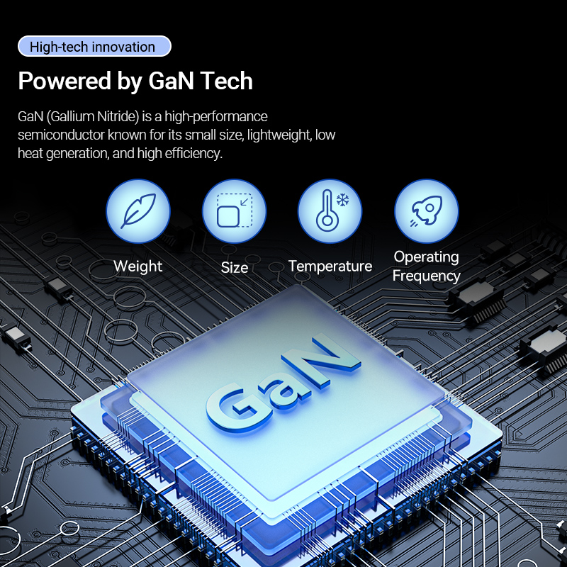 Technology: GaN (Gallium Nitride) – Efficient, compact, and cooler operation.