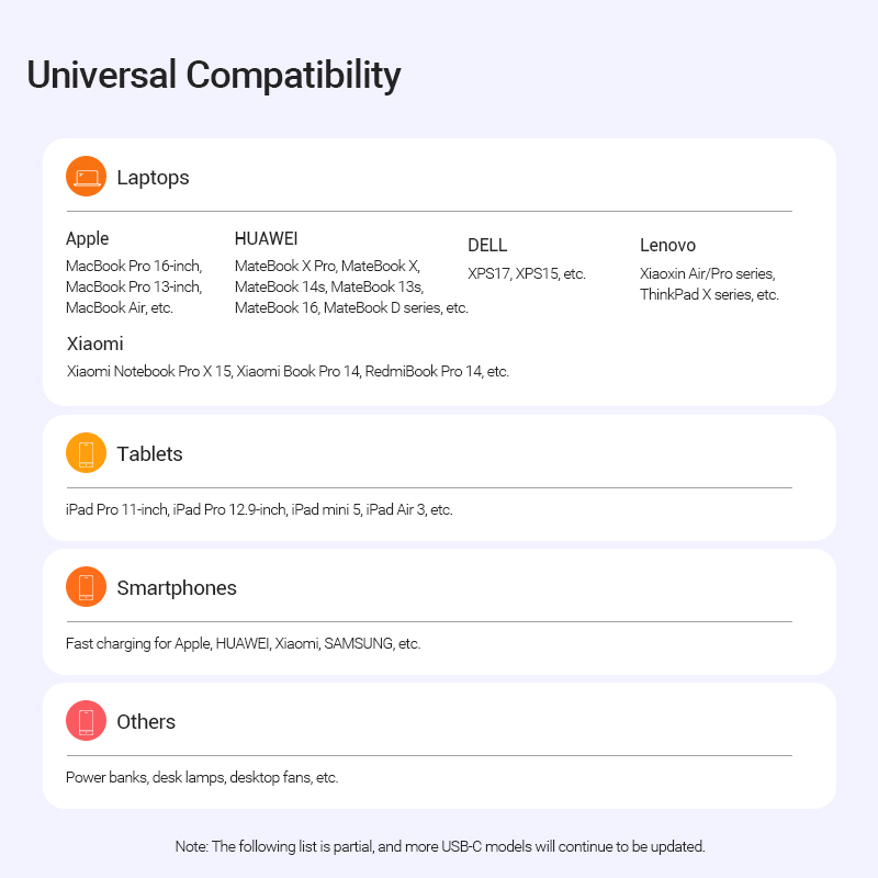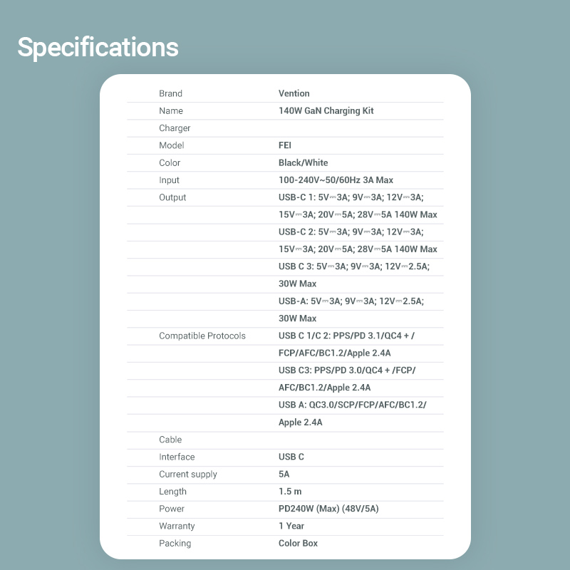 USB-A Port: 1x (Supports QC3.0, AFC, FCP, SCP)