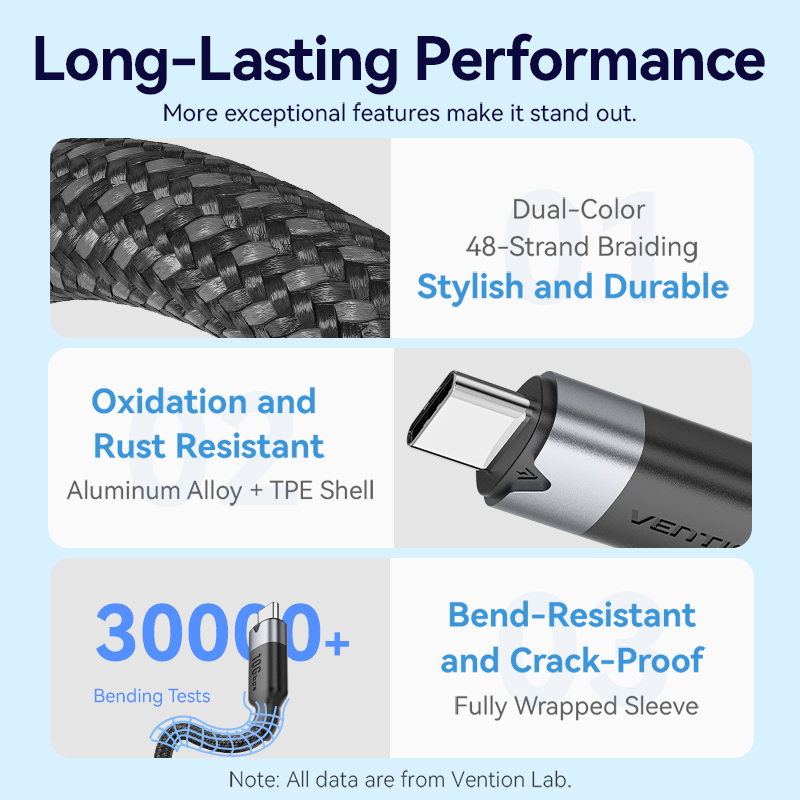 Vention IT Cable USB-C 3.2 Gen2 M-F 1.0m Braided Aluminum Black TRFBF