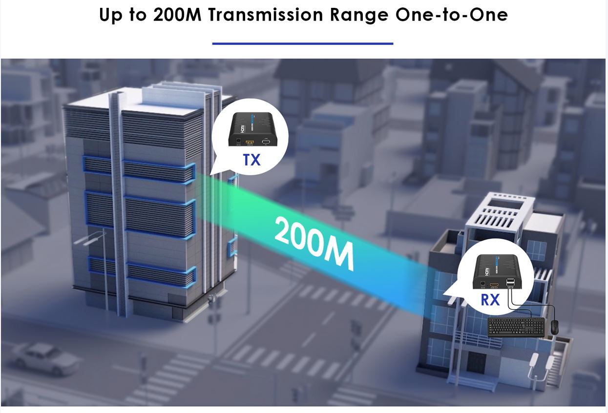 This is a HDMI KVM EXTENDER, is made up of a transmitter unit(local site) and a receiver unit(remote site). The HDMI signal can be extended up to 120 meters via network cable, and the resolution supported is up to 1080p@60Hz. It allows access to a compute