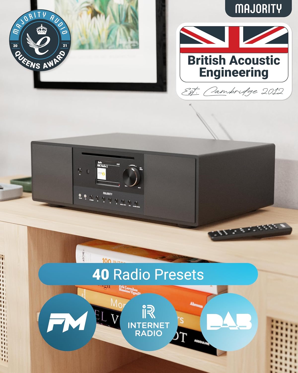 𝗦𝗣𝗢𝗧𝗜𝗙𝗬 𝗖𝗢𝗡𝗡𝗘𝗖𝗧, 𝗣𝗢𝗗𝗖𝗔𝗦𝗧𝗦: Connect your Spotify account to directly stream your music library and favourite podcasts. Inbuilt CD player also allows to enjoy your older music catalogue in exceptional Hi-Res quality.