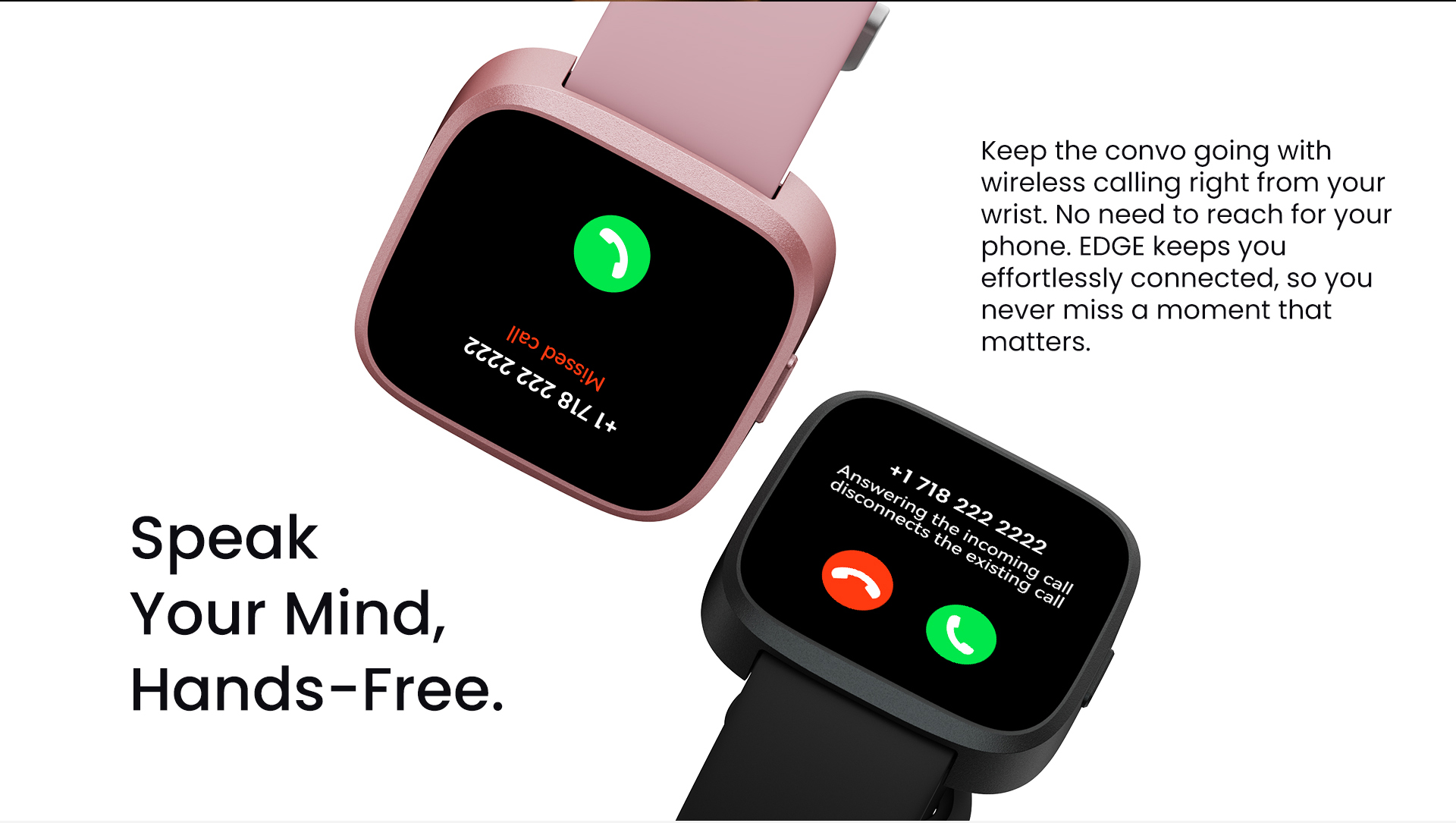 • Speak your mind, hands-free: Keep the convo going with wireless calling right from your wrist. No need to reach for your phone. EDGE keeps you effortlessly connected, so you never miss a moment that matters.