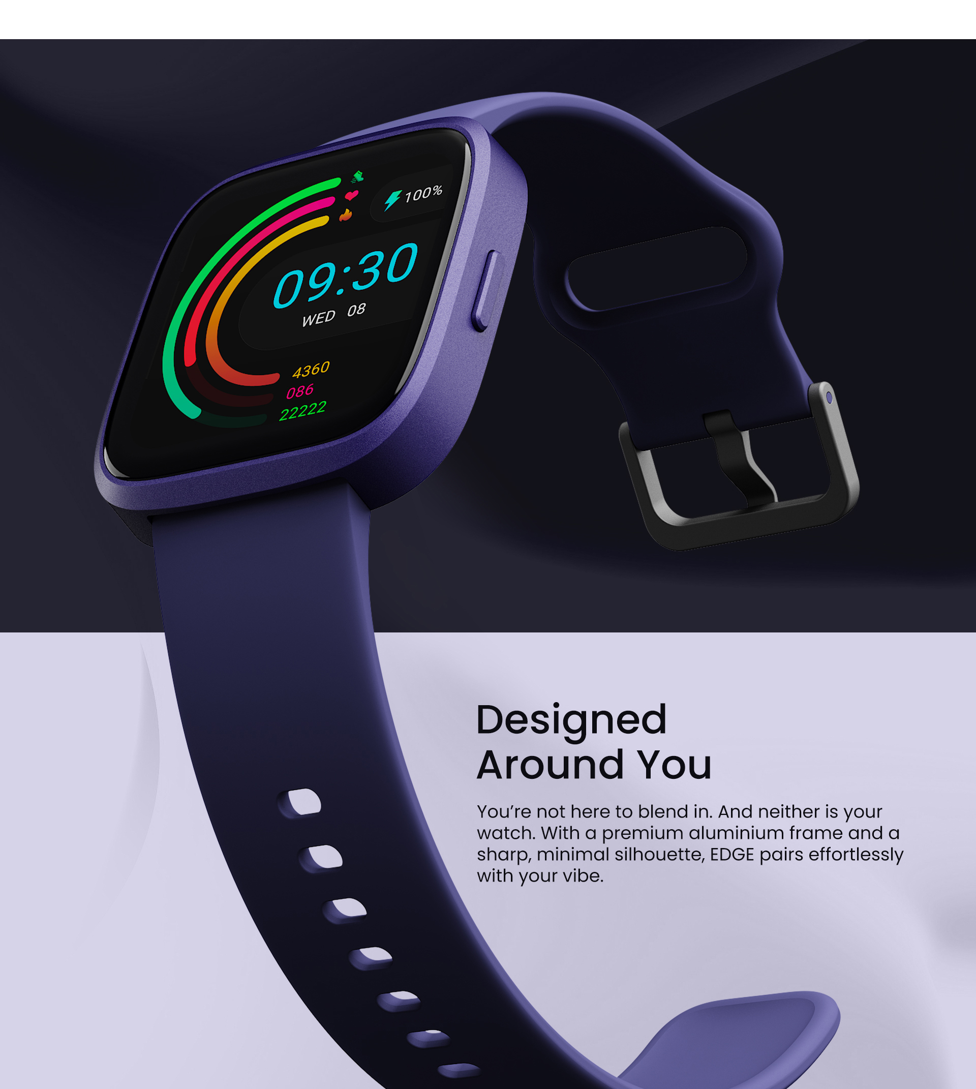 Designed around you: You’re not here to blend in. And neither is your watch. With a premium aluminium frame and a sharp, minimal silhouette, EDGE pairs effortlessly with your vibe.
