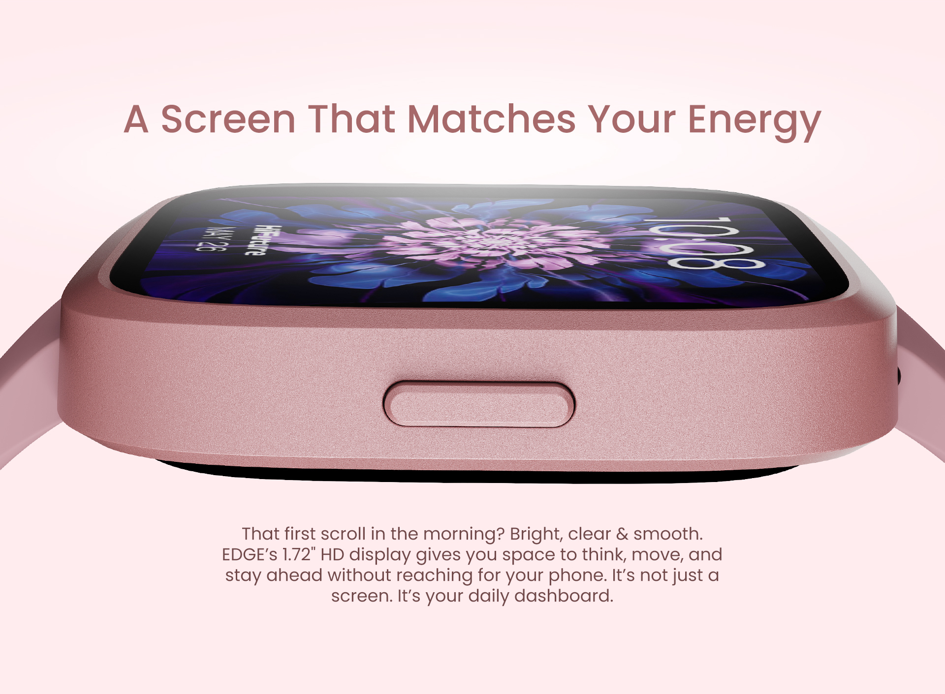 A screen that matches your energy: That first scroll in the morning? Bright, clear & smooth. EDGE’s 1.72" HD display gives you space to think, move, and stay ahead without reaching for your phone. It’s not just a screen. It’s your daily dashboard.
