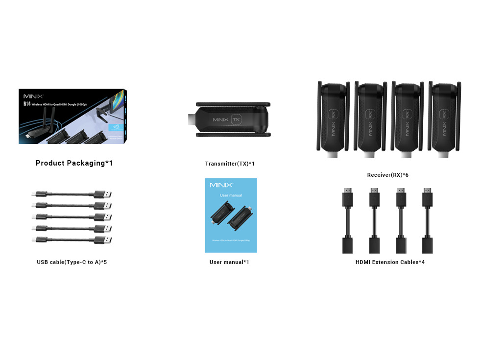 The MINIX NEO B14 1-to-4 wireless display dongle offers an impressive feature that allows simultaneous connection to multiple devices. With the capability to connect up to four devices at once, it is ideal for sharing content across different screens without the hassle of constantly switching connections.