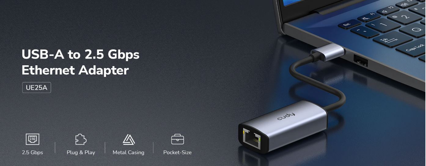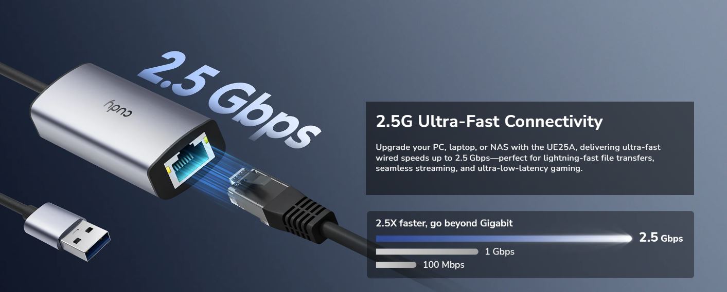 A USB-A 3.0 to 2.5G RJ45 dongle for upgrading your PC, laptop, or NAS with ultra-fast wired connectivity. Compact and driver-free, it supports plug-and-play and features Wake-on-LAN for remote access.