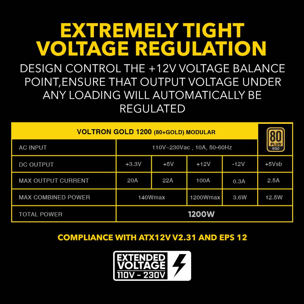 Armaggeddon Gaming PSU 1200W Modular & Certified 80+ VOLTRON GOLD 1200 Black