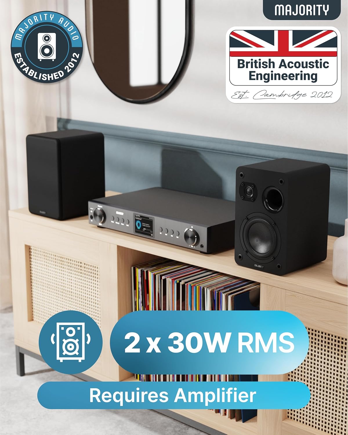𝗪𝗛𝗔𝗧’𝗦 𝗜𝗡 𝗧𝗛𝗘 𝗕𝗢𝗫: This product includes 2 x Majority D70XPassive Speakers, 2 x 2-metre speaker cables (banana plug to stripped wire), and 1 x User Manual. Each speaker measures 14.5 cm (W) x 17.cm (D) x 23 cm (H) and weighs 3.6 kg.